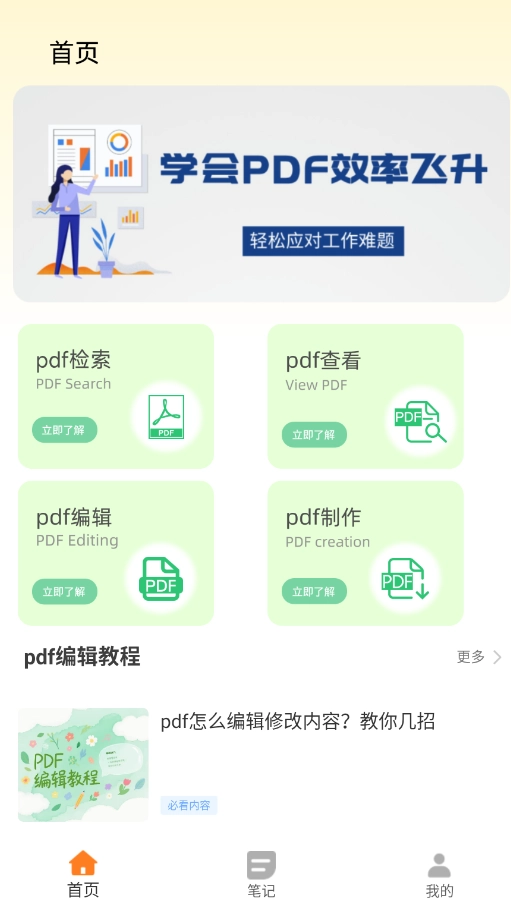 打开Noton笔记后,在首页就能看到多样的PDF处理功能选项。