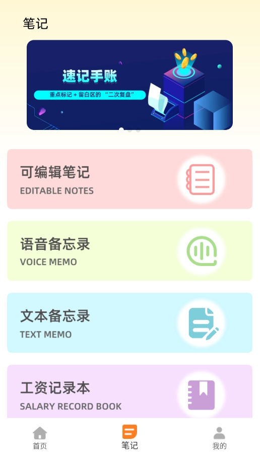 进入笔记功能模块,你会发现这里有不少实用的笔记管理和编辑工具。