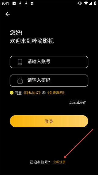在登录界面点击下方的【还没有账号?立即注册】按钮,即可切换到注册页面。