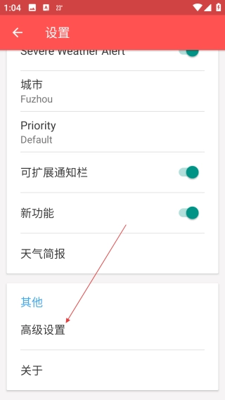 在设置界面中,点击【高级设置】选项,即可进入高级设置界面。