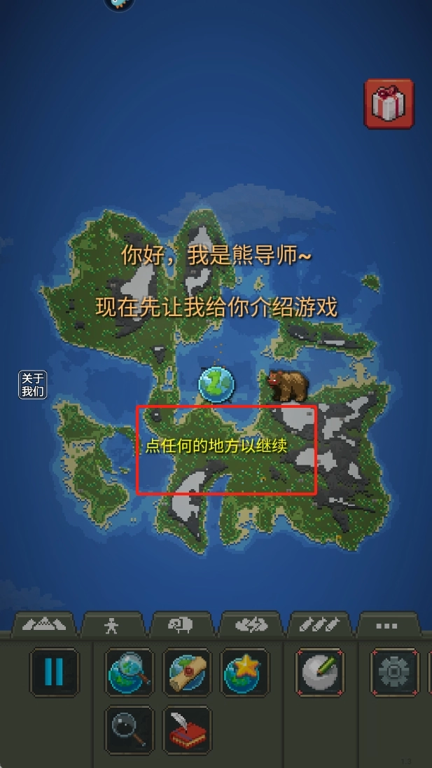 进入游戏后会出现操作指引,按照指引熟悉游戏图标的含义。