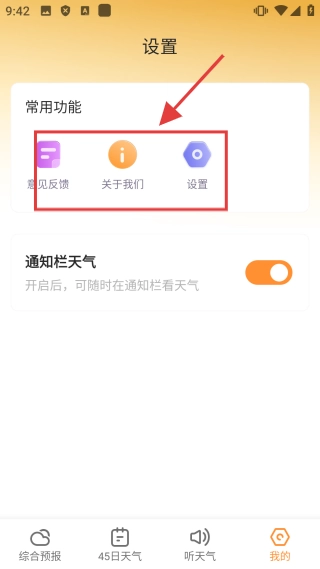 进入设置页面后,你可以【提交意见反馈、查看关于我们的信息】,还能对应用功能及通知相关设置进行管理。