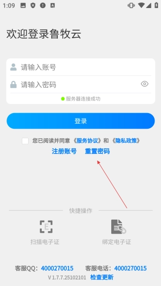 在鲁牧云的登录界面,找到并点击【重置密码】按钮,即可进入密码重置界面。