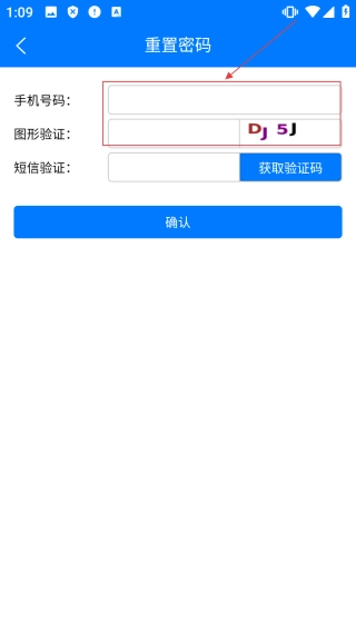 在重置密码的页面中,点击【获取验证码】按钮,获取短信验证码后将其填入对应的输入框。