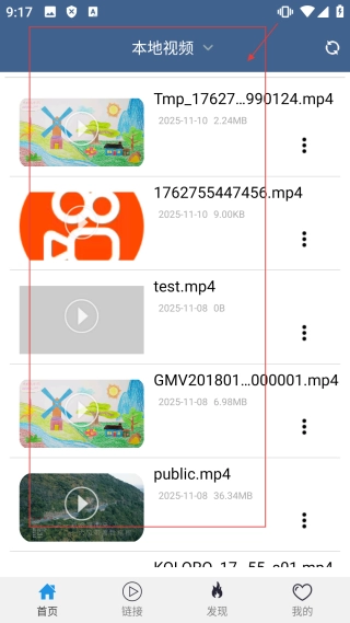 进入首页后,能查看【本地视频列表】,可选择视频进行播放,也能对本地视频资源进行管理。