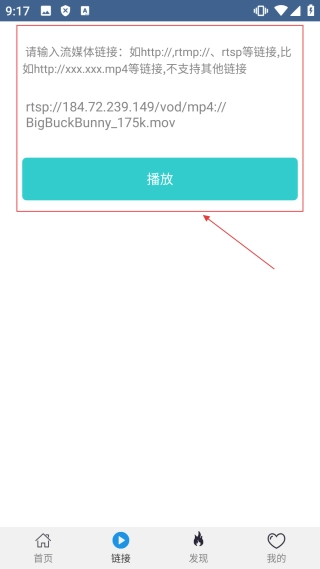 进入链接界面后,你可以【输入流媒体链接】,以此来播放网络视频资源,进而享受网络视频播放服务。