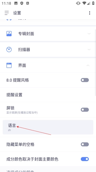 在界面设置选项里,点击【语言】选项,就能开展语言设置的相关操作。