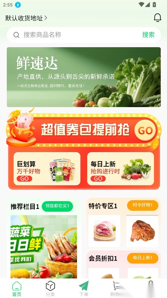 整合了全品类的生鲜商品资源,用户能在此一站式购齐所需的生鲜商品。