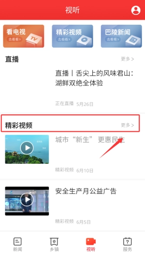 打开新巴陵新闻后,在首页导航栏点击“视听”板块,这里集合了各类视频新闻报道。