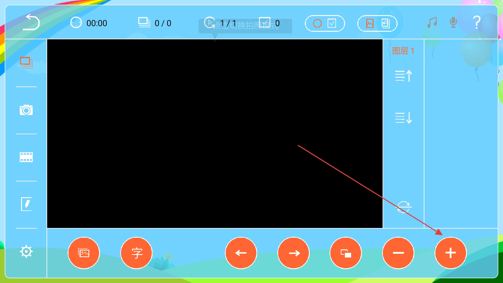 在动图动画界面,点击右下角的【+】按钮,就能进入新的创作界面,开始制作动图。