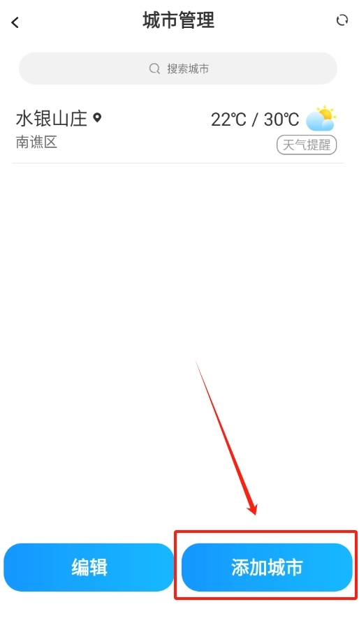 在搜索框中输入城市名称,输入完成后点击确定,该城市的天气信息就会添加到你的列表中。