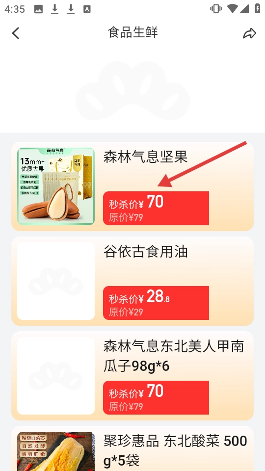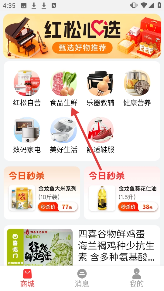 点击【食品生鲜】分类,进入食品生鲜商品列表页。