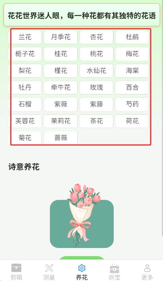 进入“养花”板块,就能查询各类花语的解读,帮助你更深入地理解不同花语所蕴含的意义。
