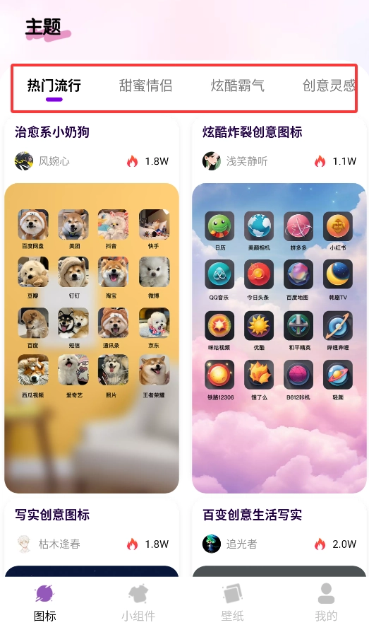 这个桌面美化功能可太好用了!上千款图标主题随便换,动态壁纸和实用小组件也都有。每天换个新风格,用手机都更开心了。主题分类很清楚,找起来特别方便,新手也能很快上手打造个性化桌面,快来试试吧!