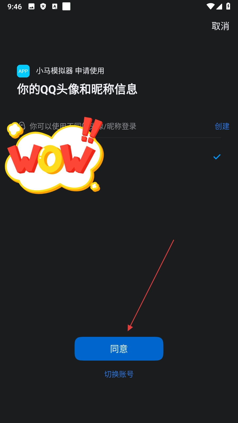 在QQ授权页面,点击【同意】按钮,就能完成账号登录的操作啦。