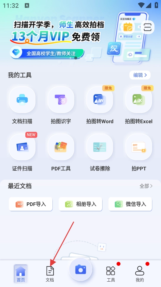 在主界面里,点击底部的【文档】按钮,就能进入文档页面。
