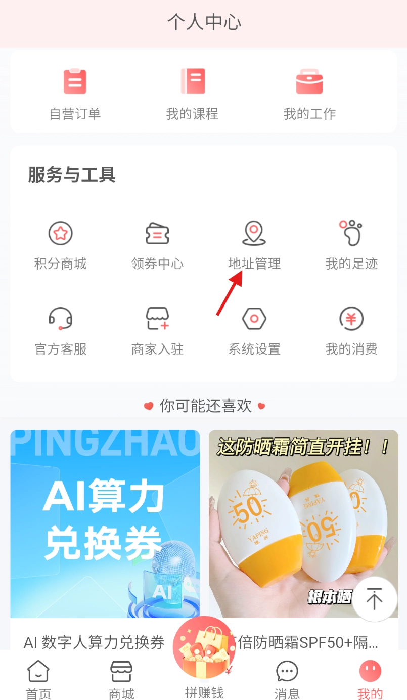 在“我的”页面里找到“地址管理”选项并点击,就能进入收货地址页面啦。