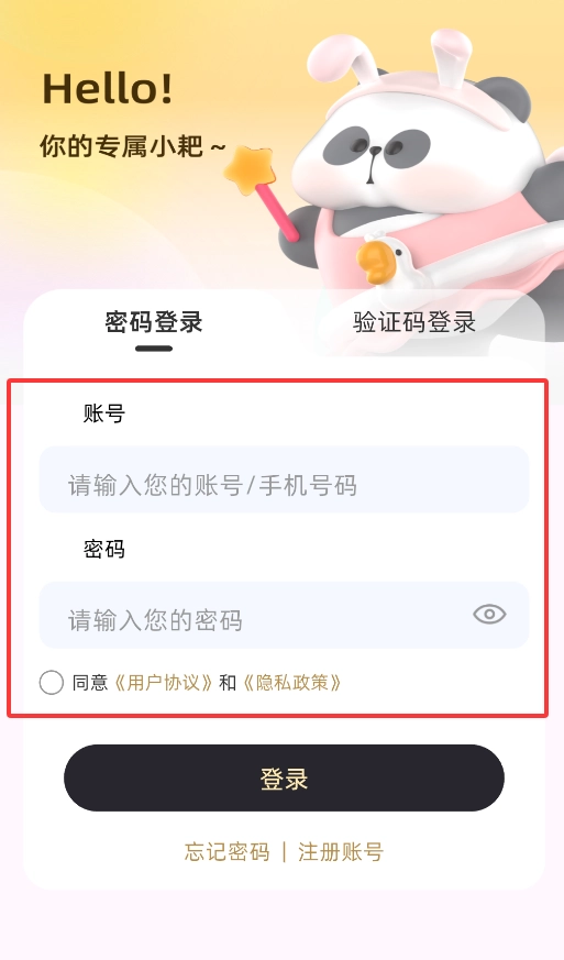 完成注册操作后回到登录页面,凭借注册时使用的手机号与设置的密码,就能顺利登录系统。