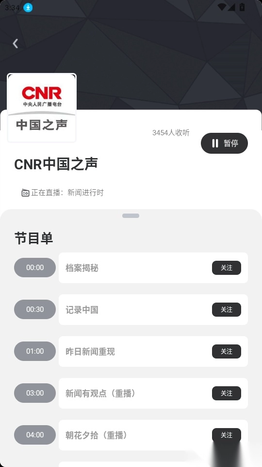 4.最后就可以播放广播,实时收听正在播放的广播内容