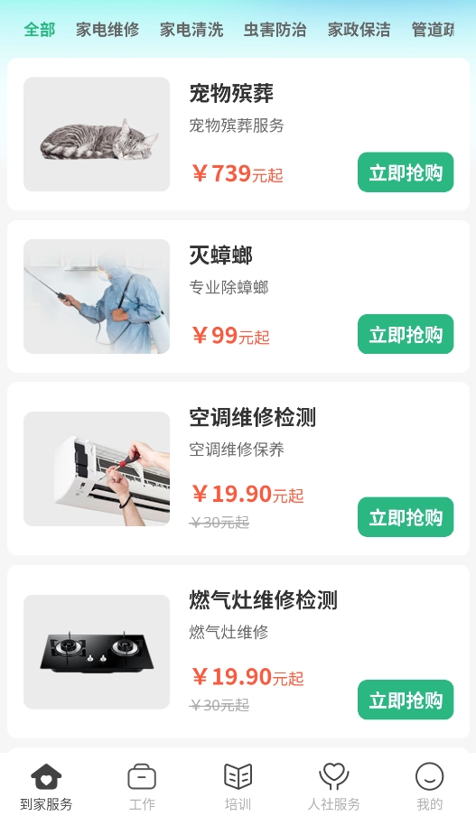 启动后,进入“到家服务”专区,就能预约宠物善终、家电维修等各类生活服务,还能按照距离远近和商家评分来筛选合适的服务商家。