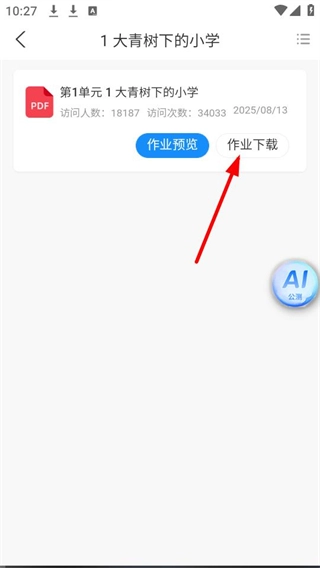 找到【1大青树下的小学】对应的作业后,点击【作业】选项即可获取该作业内容。
