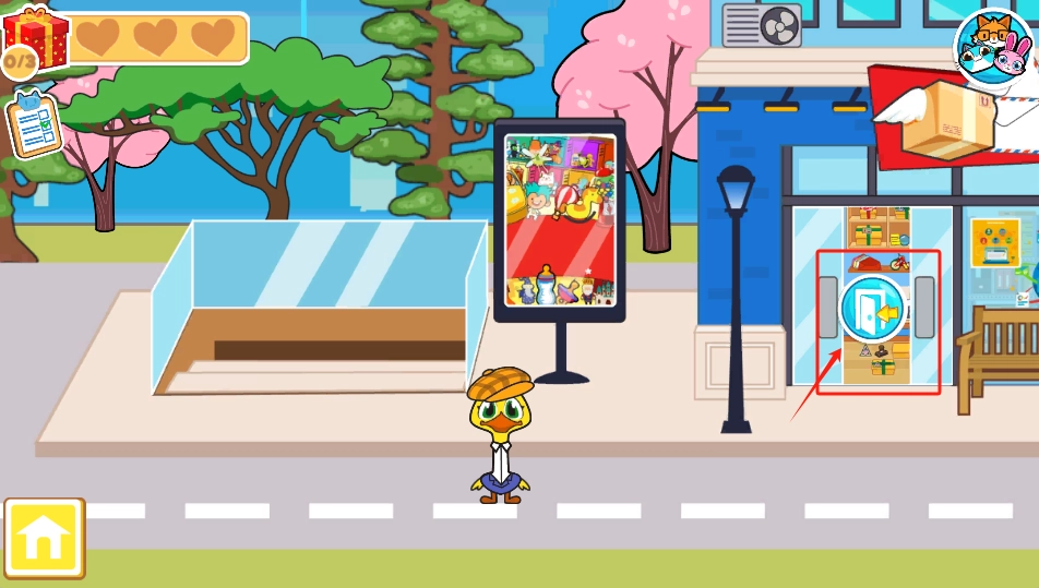 让小鸭子走到对面亮灯的店铺,点带加号的门进去。