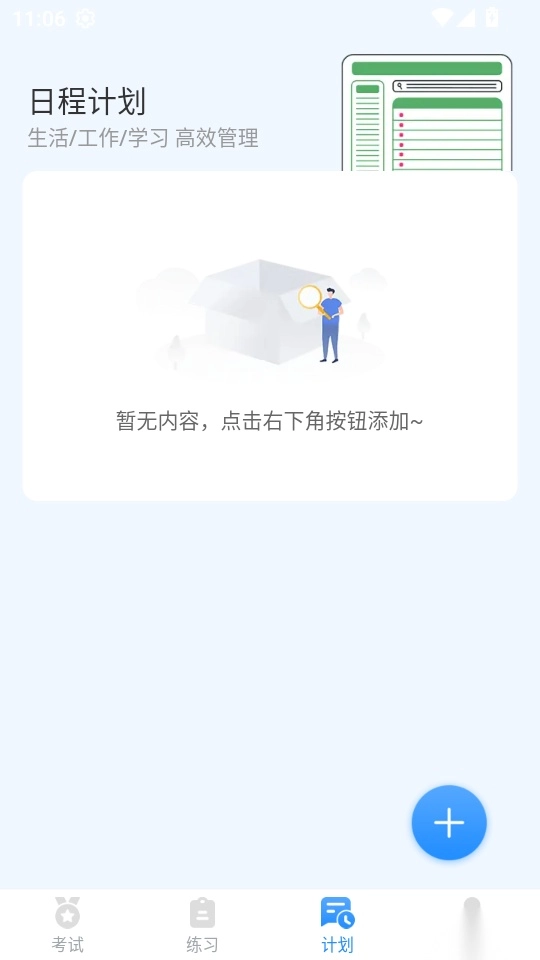 3.在“日程计划”功能菜单界面,找到右下角那个“加号”样式的图标按钮,点击它进入。