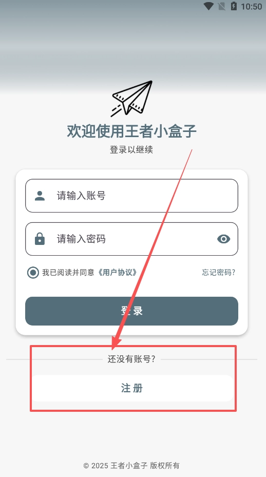 1、点击王者小盒子登录以继续界面中的“注册”。