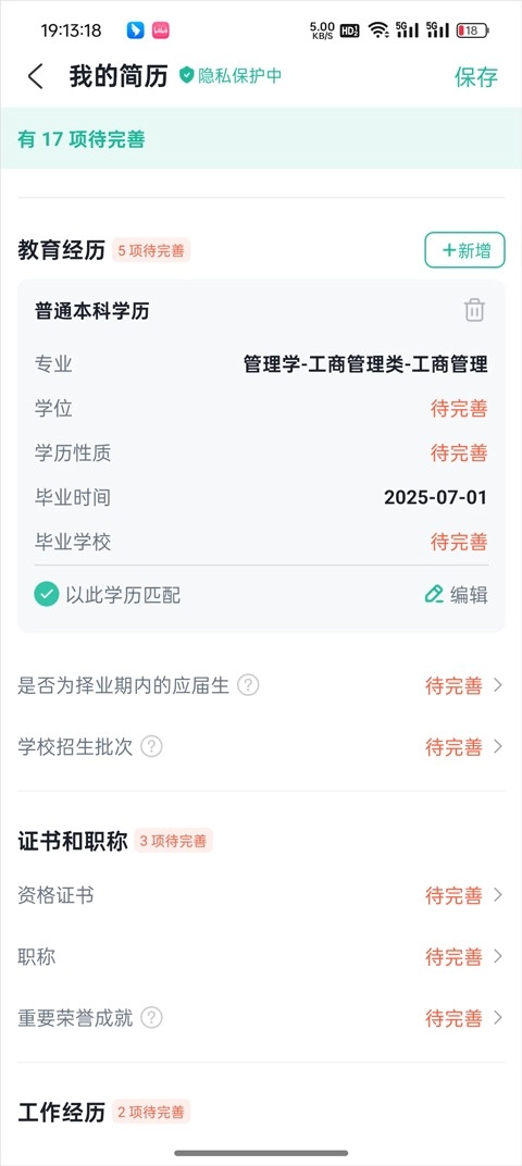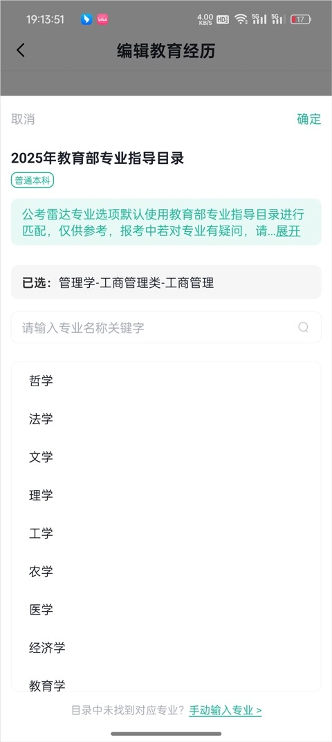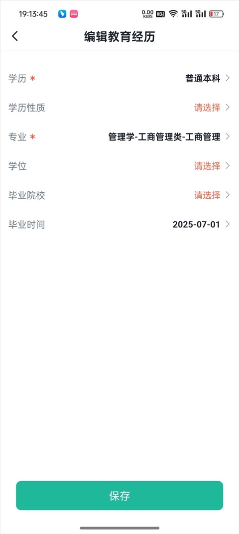5、最后回到教育经历编辑页面,此时能看到专业已选择成功,点击下方的“保存”按钮就可以完成修改。