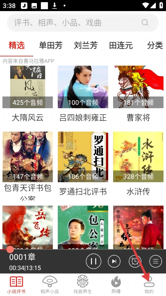 我们整合了所有品类的传统艺术资源,包含袁阔成、单田芳的评书,郭德纲、侯宝林的相声,还有各种各样的戏曲和小品。这些资源不仅覆盖范围广泛,而且更新速度也很及时。