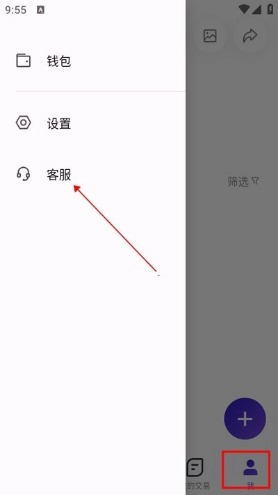 点击“我的”,再选择左上角的三条横杠图标,就能找到客服选项了。