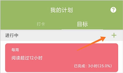 2、进入我的计划页面,切换至目标栏目,点击其中的+号按钮。