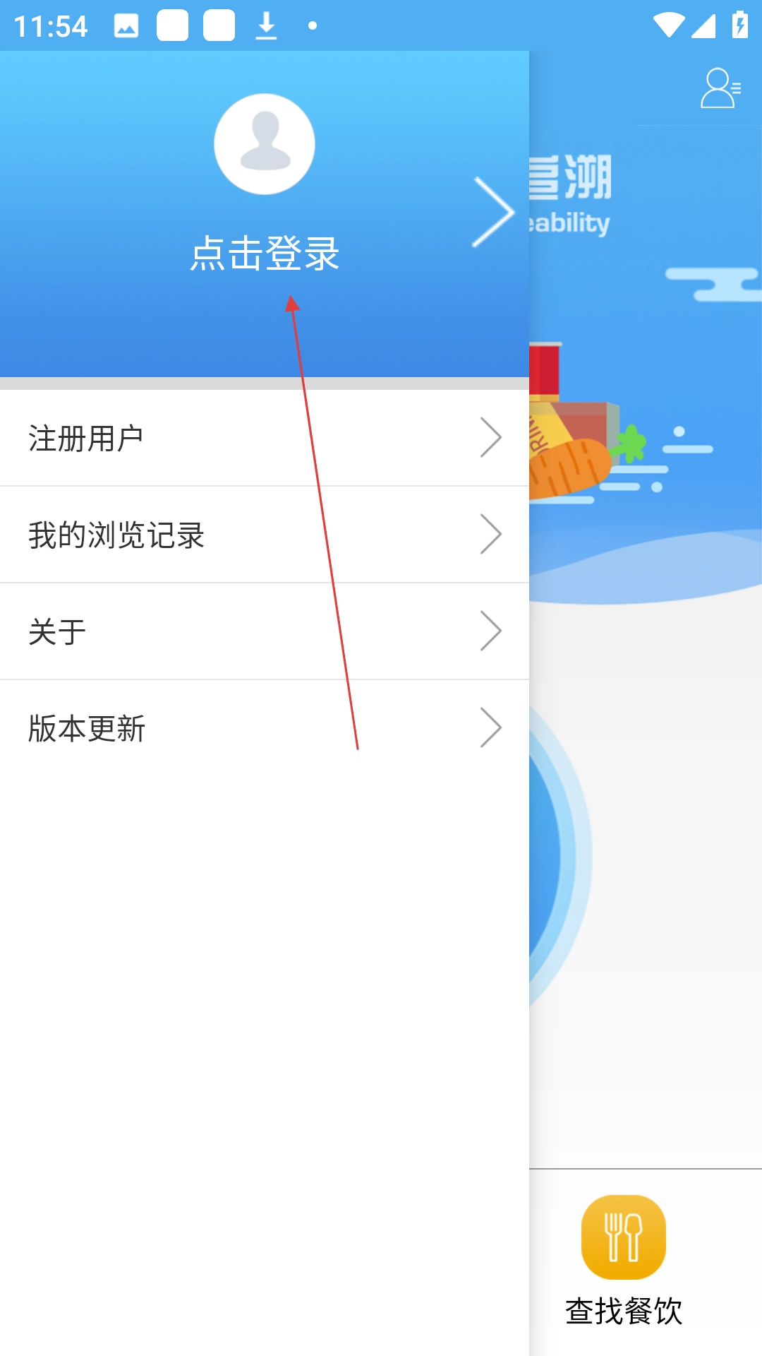 在侧边栏点击【点击登录】按钮进入登录页面。