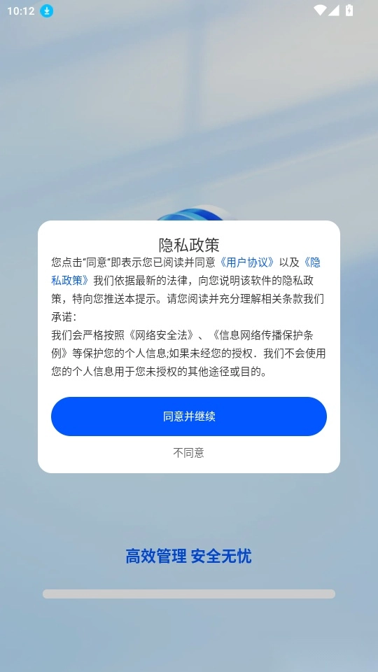 1. 启动软件后阅读“隐私政策”,点击“同意并继续”按钮进入应用