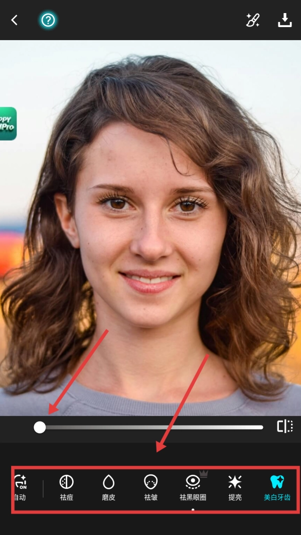 在美颜编辑页面【调整美颜效果】,让照片更完美。