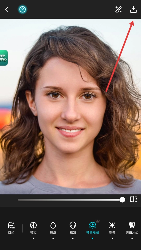 在美颜编辑页面完成编辑后,点击【】就能保存美颜后的照片。