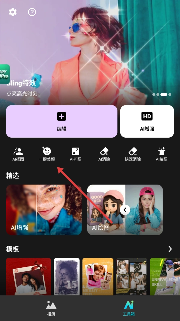 在一键美颜页面【选择图片】,进入美颜编辑页面。