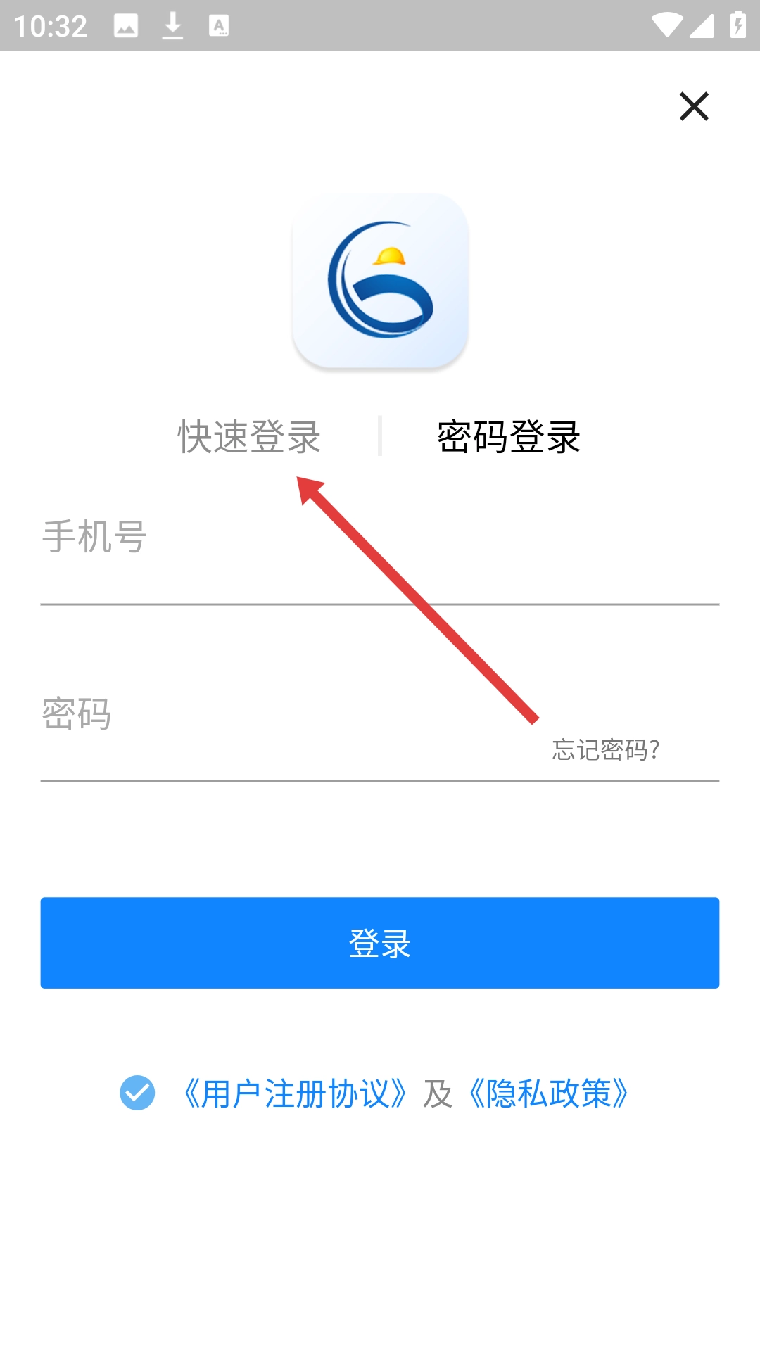 在登录页面选择【快速登录】切换登录模式。