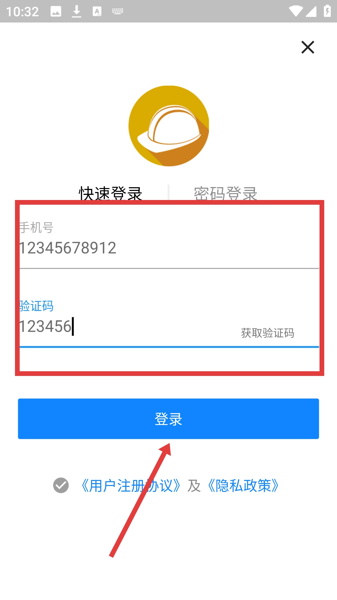 在快速登录页面填写好所需信息后,点击【登录】按钮就能完成登录操作。
