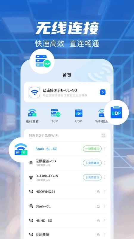 2、可快速高效地连接WiFi网络,为用户带来便捷的极速上网体验。
