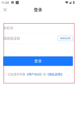 3、进入登录页面后,依次填写相关信息、勾选协议,随后点击登录按钮,即可完成登录流程。