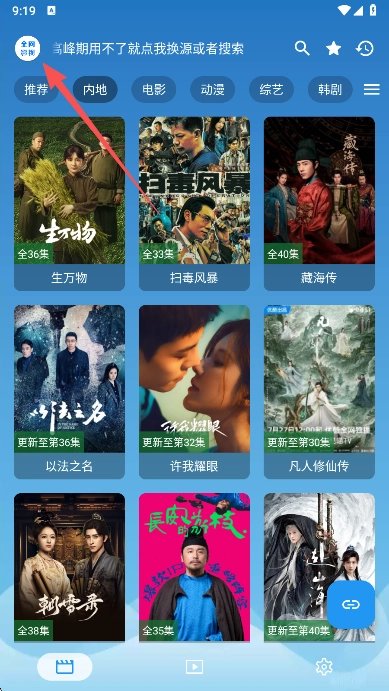 1、点击首页左上角的影视图标