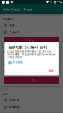 1、打开本站提供的Auto Clicker自动点击器,系统会弹出开启无障碍服务的提示,此时点击确定即可。