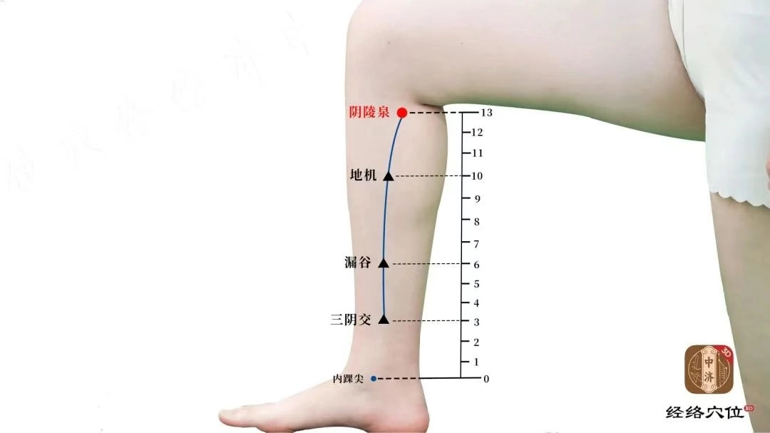 阴陵泉穴是祛湿的关键穴位,处于小腿内侧,在胫骨内侧髁下缘和胫骨内侧缘之间的凹陷处。此穴具备健脾渗湿、疏通三焦的功效。