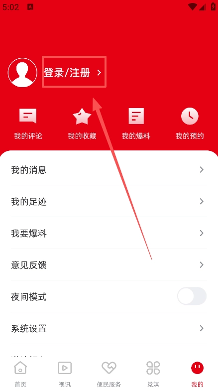 2、接着点击登录/注册