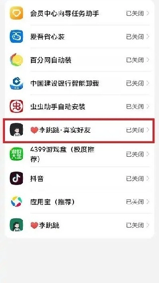 3. 在服务列表中找到【李跳跳真实好友】,进入该服务并将其开启。