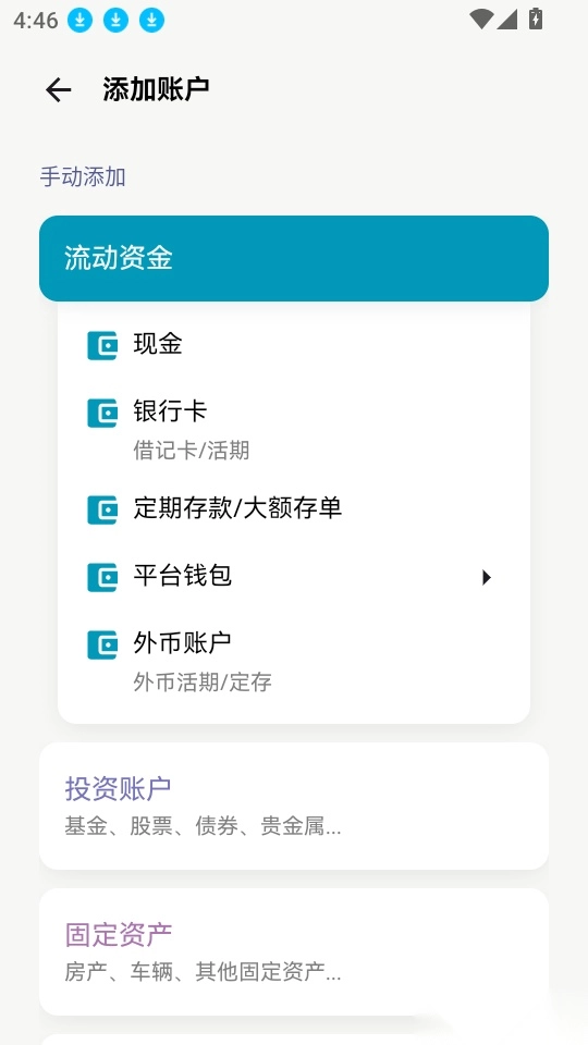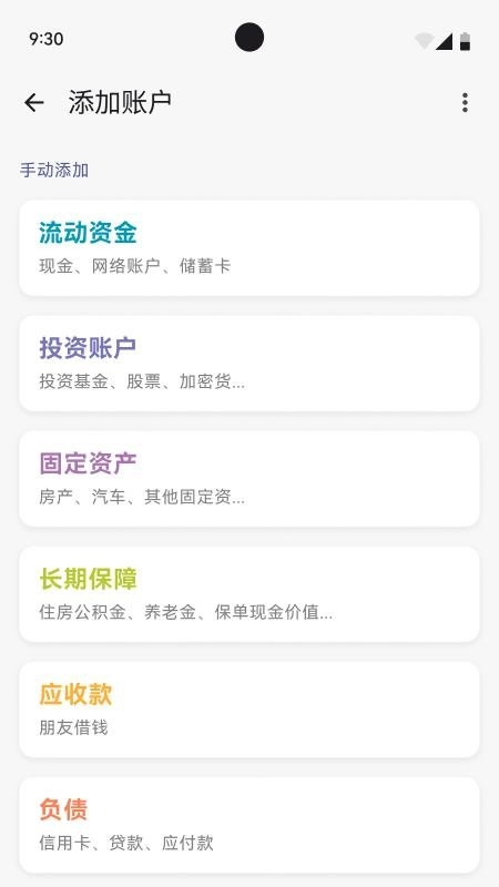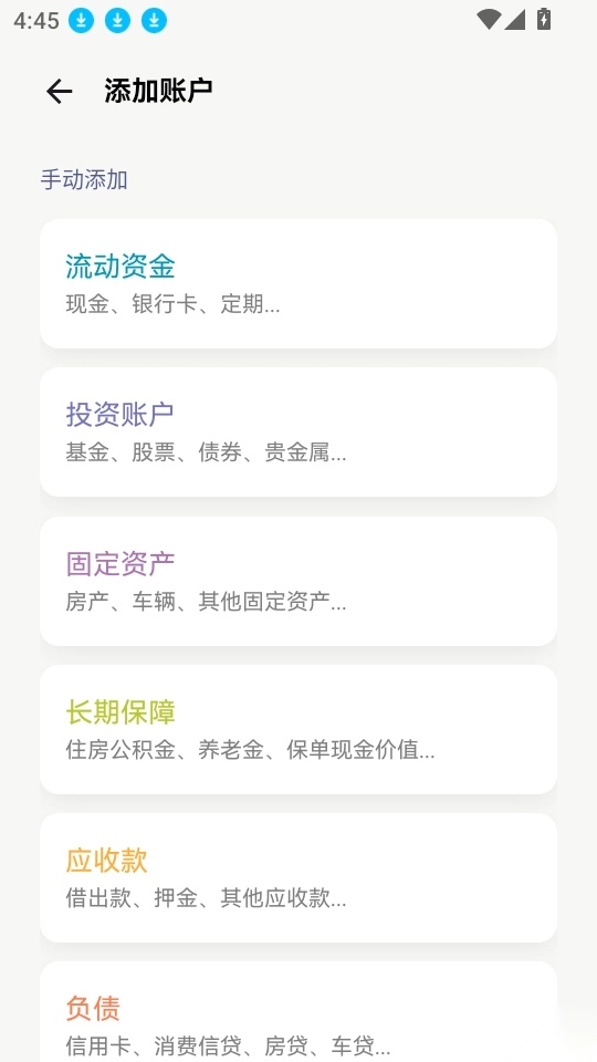 2、支持用户添加多类账户,清晰实现账户分类管理。