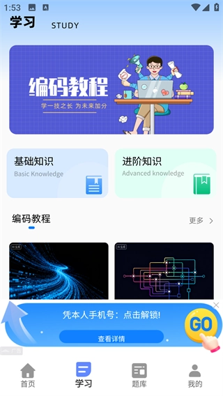 3、点击学习板块即可获取基础知识与部分进阶知识的学习内容。
