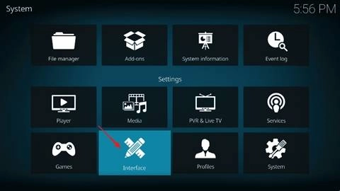 2、点击“Interface”。