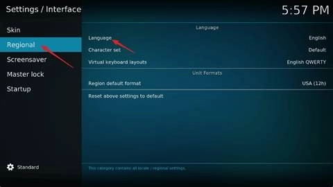 5、关闭当前窗口,回到之前第三步操作时的那个窗口,选择“Regional”→“Language”选项。